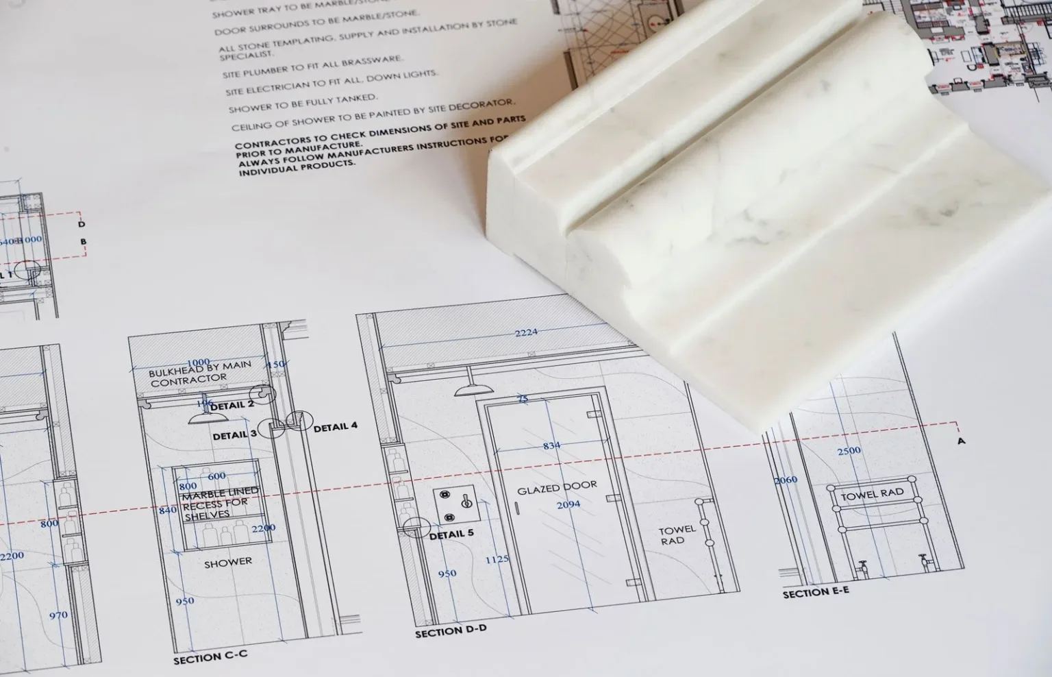 Our in-house Draftsmen transform your requirements into accurate technical drawings. These detailed plans act as a blueprint for manufacture, giving you full visibility before production begins. Every element is measured and modelled to ensure a perfect fit. Draft drawings are reviewed and approved with you, so you can be confident that the finished result will meet your exact specifications.