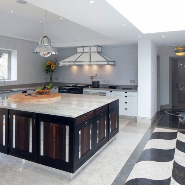 Interior: High-end kitchen countertops, bathroom vanities, flooring, and fireplace surrounds.