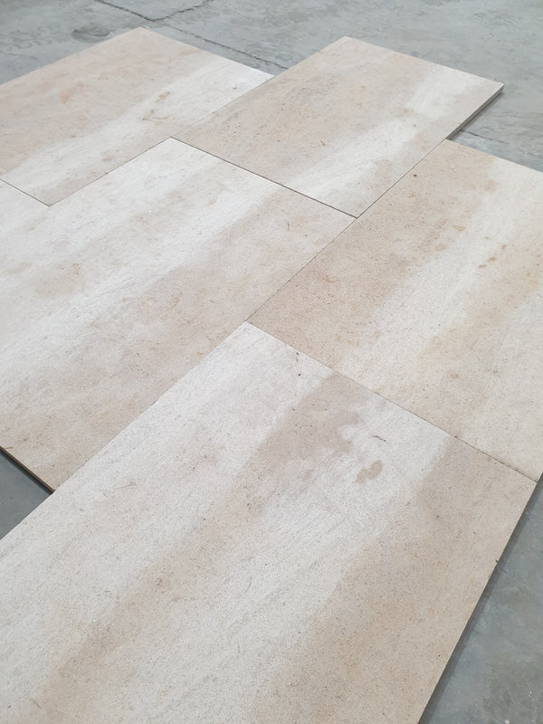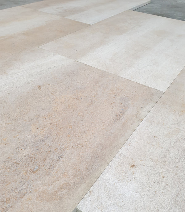 A French limestone with warm cream tones, honed to a smooth surface. Suitable for flooring in entrance halls, bathrooms, or living spaces where permanence and calm are sought.