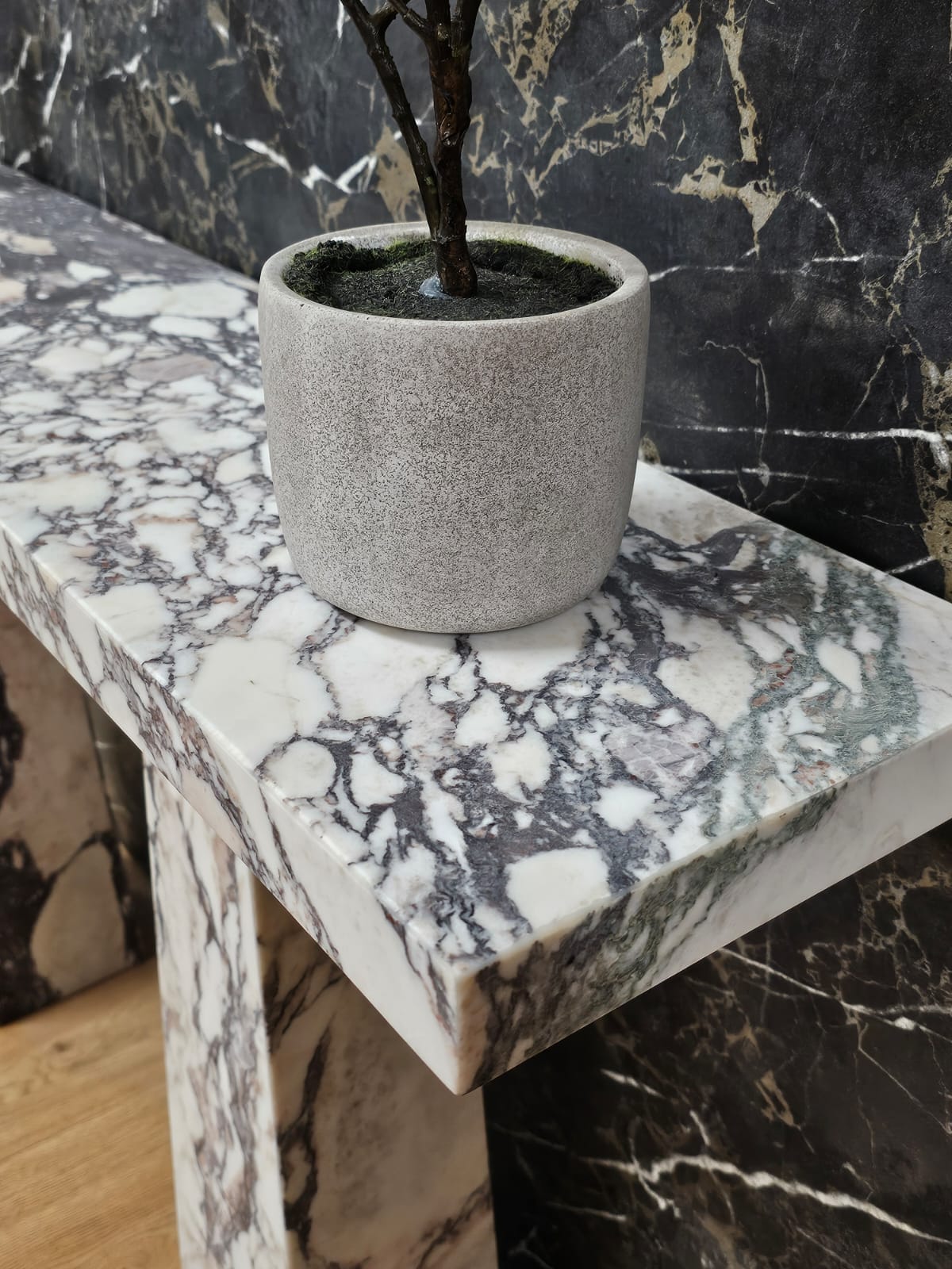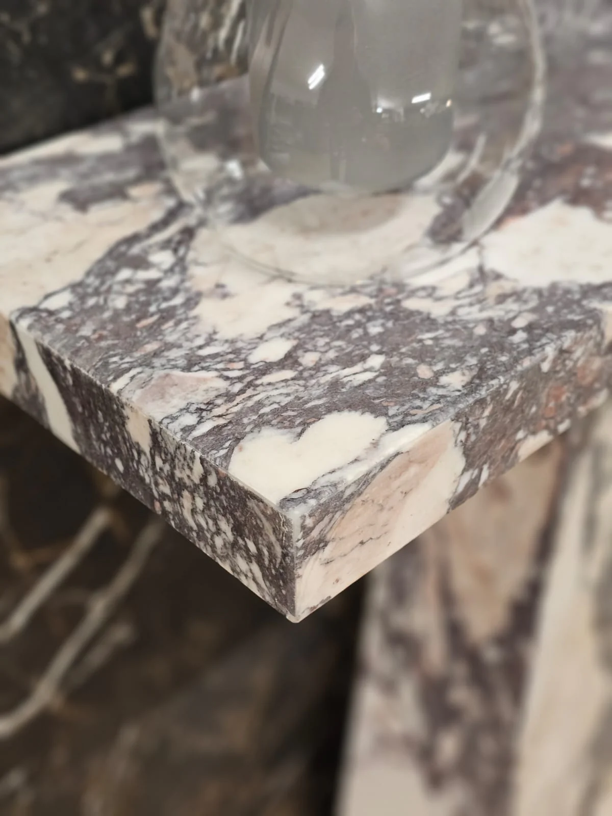 Bespoke hand made Calacatta Viola Honed finish marble. Manufactured by hand in the UK. Mired corner sections, comes in three pieces for own assembly. Sealed