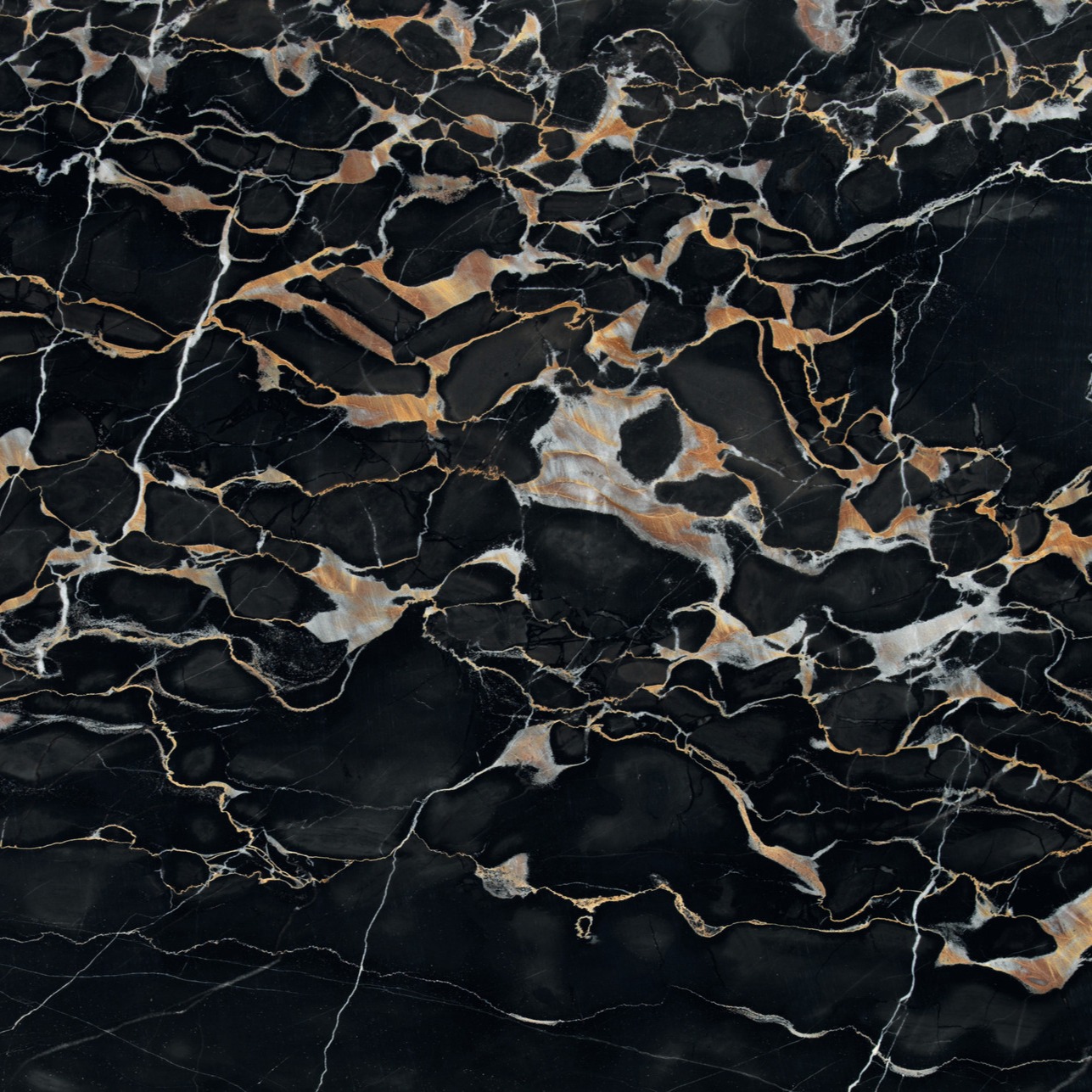 • Veining: The marble is patterned with a distinctive web of gold, amber, and sometimes white veins. The veining can vary from “Macchia Fine” (thinner veins) to “Macchia Grande” (thicker veins), with the highest quality (Nero Portoro Extra) featuring a uniform black background with continuous gold veining.