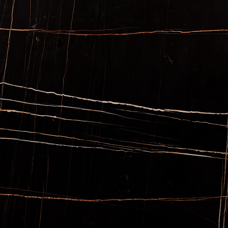Sahara Noir marble is a luxurious and dramatic natural stone known for its deep black background sharply contrasted by striking white and golden veins, giving it an opulent, elegant, and modern aesthetic. It is primarily quarried in Tunisia.