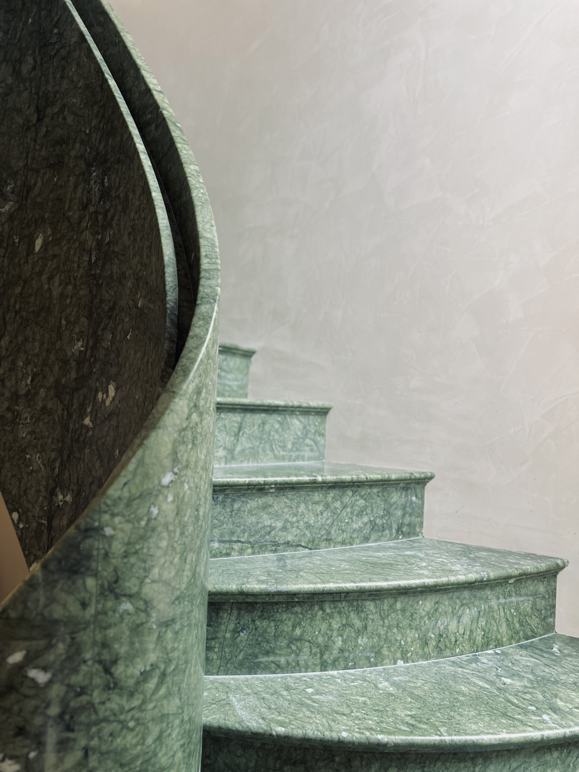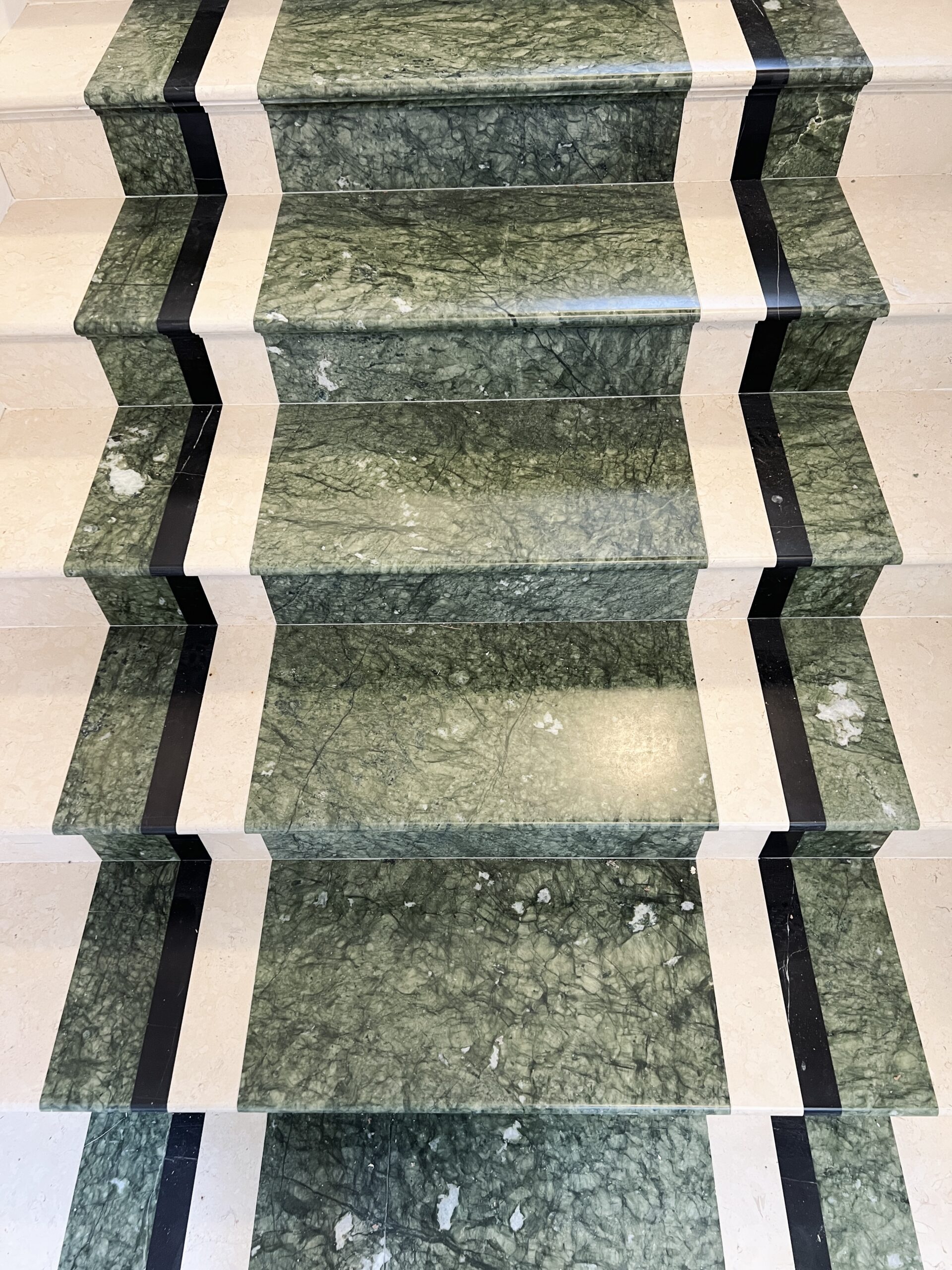 Verde Ming Green Hand Carved Staircase With Inlayed Flooring